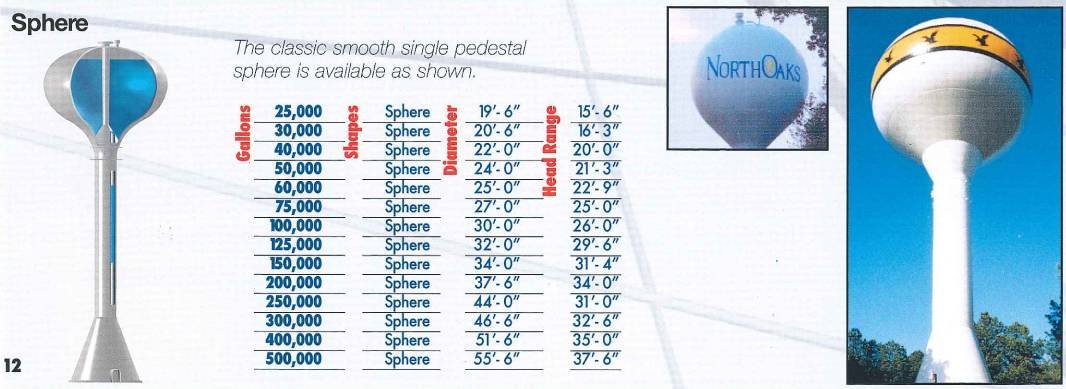 Elevated spheroid water tanks are often popular for their sleek designs and aesthetic appeal. We offer a stable spheroid water tank mounted on a single-pedestal in the following dimensions