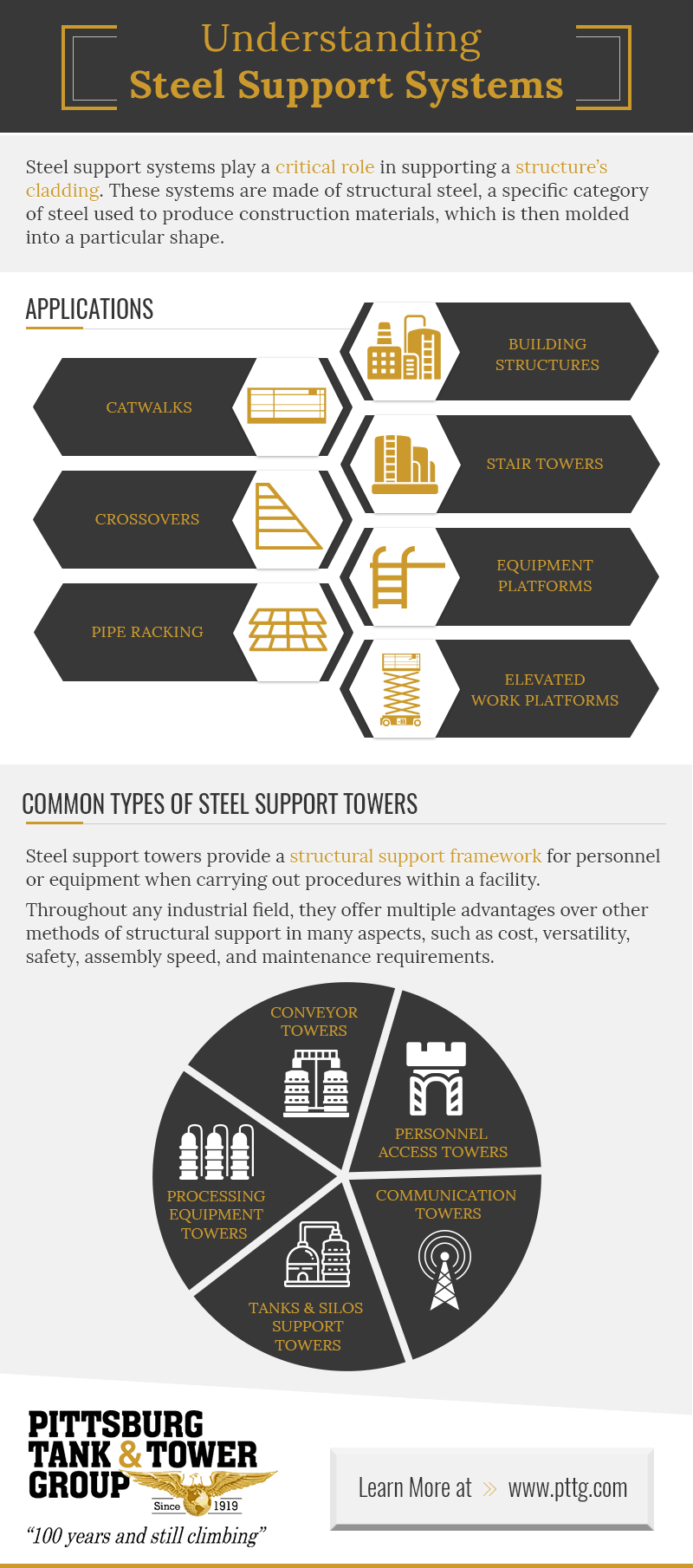 Steel support towers provide a structural support framework for personnel or equipment when carrying out procedures within a facility. Throughout any industrial field, they offer multiple advantages over other methods of structural support in many aspects, such as cost, versatility, safety, assembly speed, and maintenance requirements